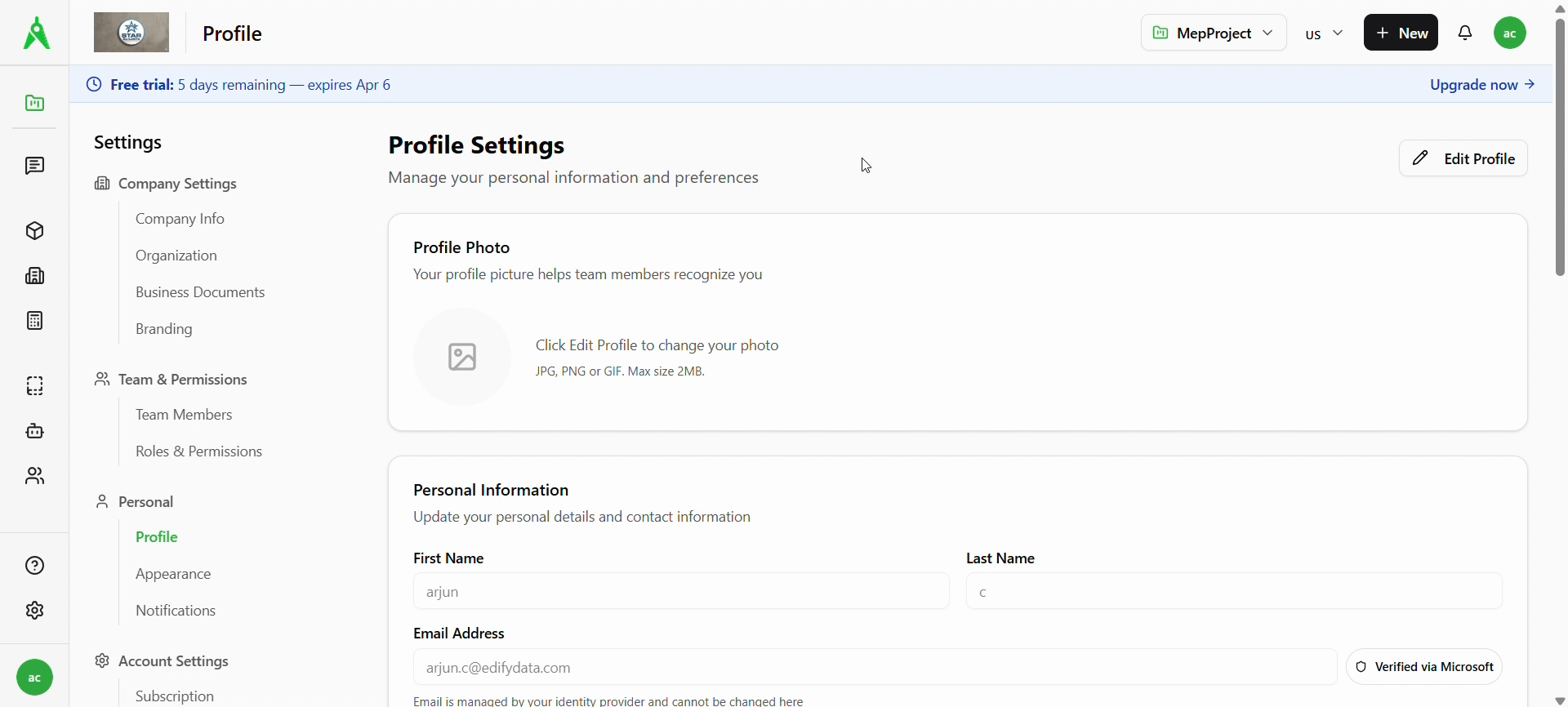 - Email can’t be edited: expected when the tenant uses SSO; change email in your identity provider if required.